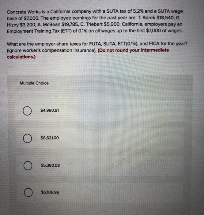 Solved Concrete Works Is A California Company With A Suta Chegg Com